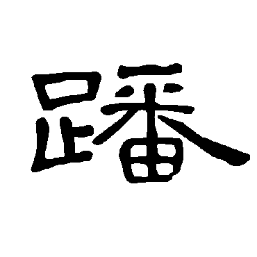 蹯【酉集中】【足部】 康熙筆画:19画,部外筆画:12画〔古文〕籵《唐韻》附袁切《集韻》符袁切《正韻》符艱切,?音煩。《說文》作番,獸足也。《左傳·文元年》食熊蹯。《註》熊掌。《類篇》亦作??。又《集韻》符分切,音汾。義同。又《韻補》叶汾沿切《曹植·名都篇》歸來燕平樂,美酒斗十千。膾鯉臇胎鰕,炰鱉炙熊蹯。