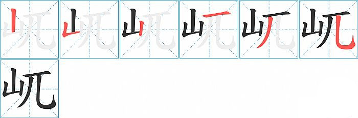 屼字的笔顺分布演示图
