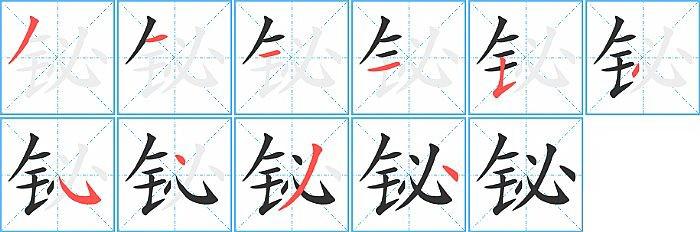 铋字的笔顺分布演示图